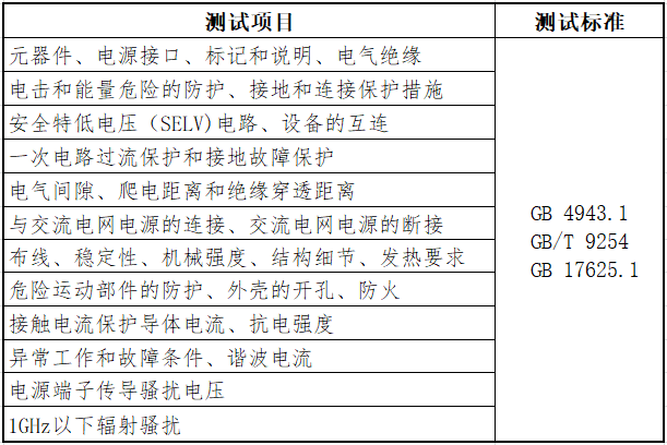测试项目与标准