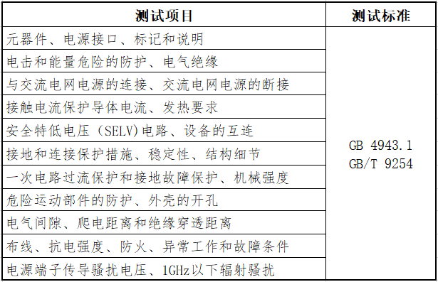 测试项目与标准