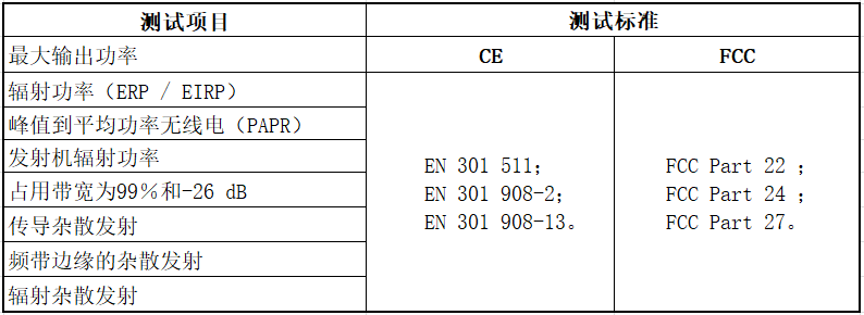 测试项目与标准
