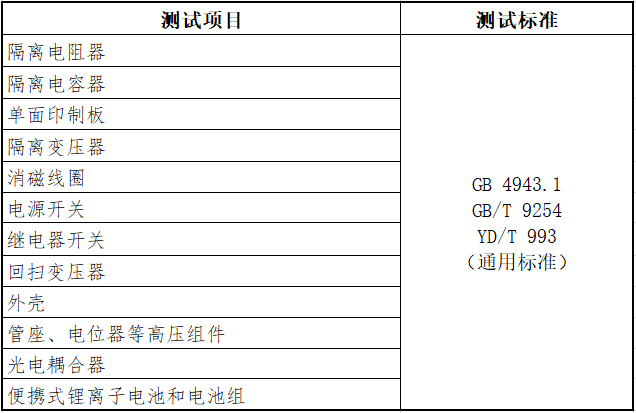 测试项目与标准