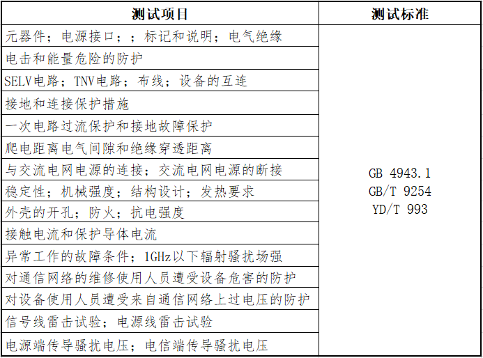 测试项目与标准